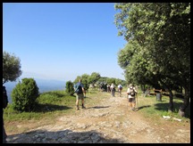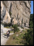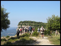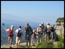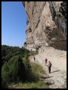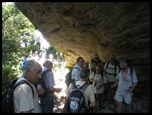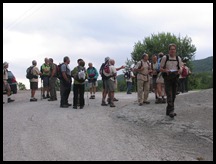 Ja feia massa estona que la caminada era tranquil·la i tanta felicitat no podia durar. Comencem una pujada que ens fa fer algun bufet i que mena a la coneguda i característica Roca Llarga, singular i enorme pedruscot sobre el qual es situa tota la colla. El nostre fotògraf no desaprofita l’ocasió i prem el disparador. Ben a la vora d’aquí contemplarem un accident geografíc peculiar d’aquesta contrada: una balma. Aquesta es coneix amb el nom de balma de Cortils, és al costat del camí i sota la gran roca que la forma, hom es podria aixoplugar o amagar perfectament. Val la pena contemplar-la. No som gaire lluny del nostre destí. Poc més enllà tanquem el cercle fent cap al petit coll que unes hores abans hem creuat per baixar cap a Sant Corneli i després d’uns deu minuts de descens, ens esperen el vehicles degudament “calefaccionats” per un sol bastant valent. Fins aquí el trajecte però ara vé el “fi de festa”. Un bon dinar a l’Hostal de la Devesa, ben servit i saborós, regat amb el cava que els Joans, Lluïsos, Enrics i Antons ens obequien en celebració de llurs onomàstiques, en un ambient de franca companyonia. I un apunt final: el reconeixement als camaradas francesos, a l’amic Quim, de Cassà de la Selva i als bergadans, que amb les seves esposes han volgut estar al nostre costat.